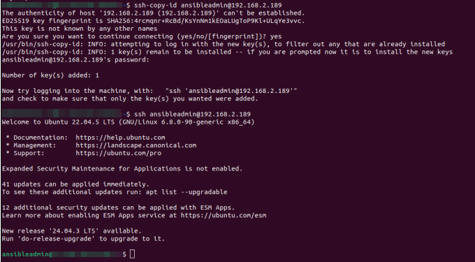 v. From another machine (or the control node), run: ssh ansibleadmin@target_system_ip