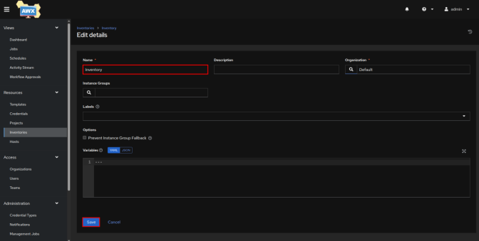 iii.Log in to the Ansible Tower (AWX) web interface using the default or configured credentials.