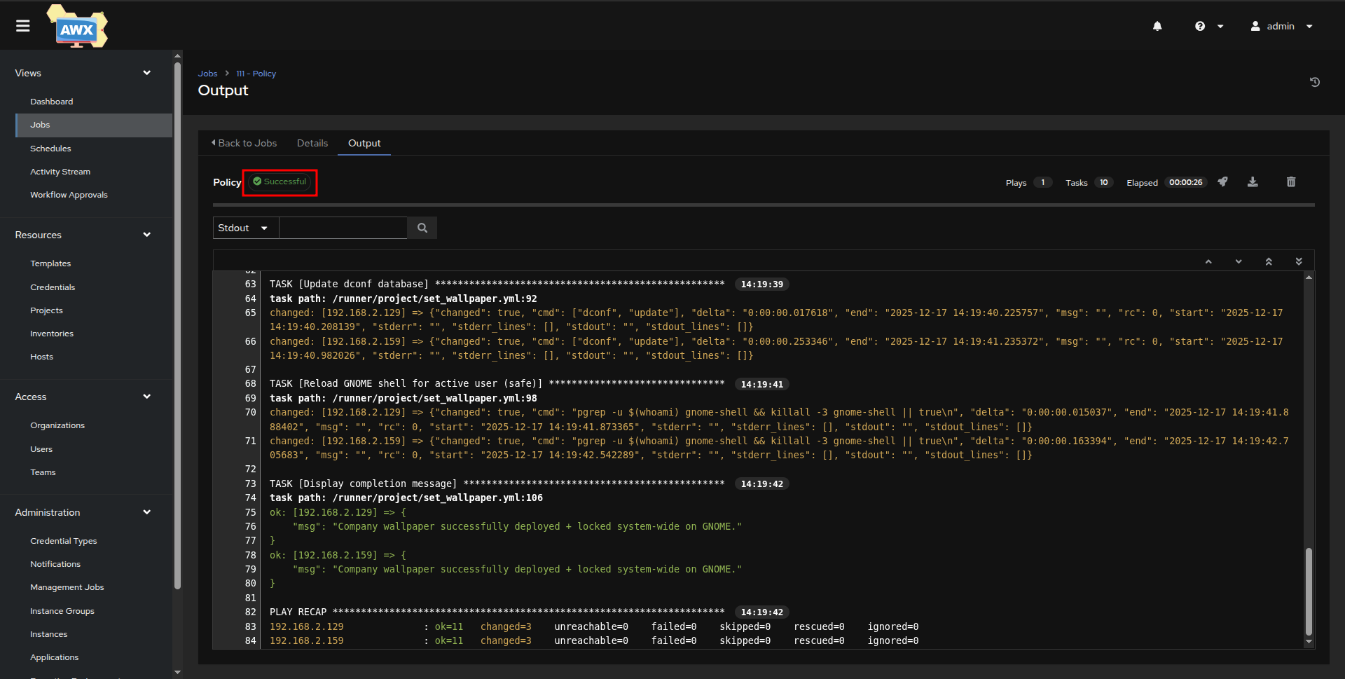 Step5: Execute the job template to deploy the wallpaper policy to the selected target systems.